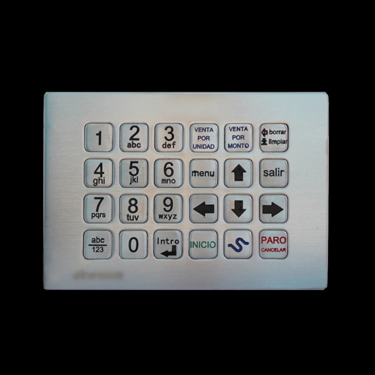 1. 24 مفاتيح IP65 مقاوم للتخريب لوحة مفاتيح مصفوفة من الفولاذ المقاوم للصدأ.10 مفاتيح أرقام ، 14 مفتاح وظيفة.